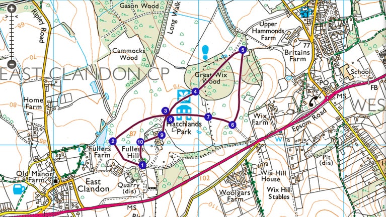 Hatchlands Park is one of the largest country estates in the green belt surrounding Greater London. This circular walk cuts across the centre of the estate through woodland and open parkland, passing the children's adventure area and providing good views of the house. The route is waymarked with purple arrows.